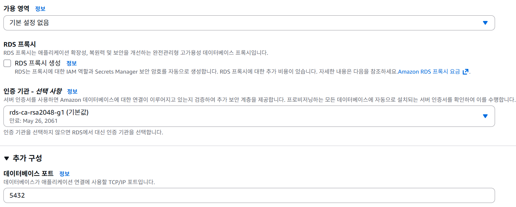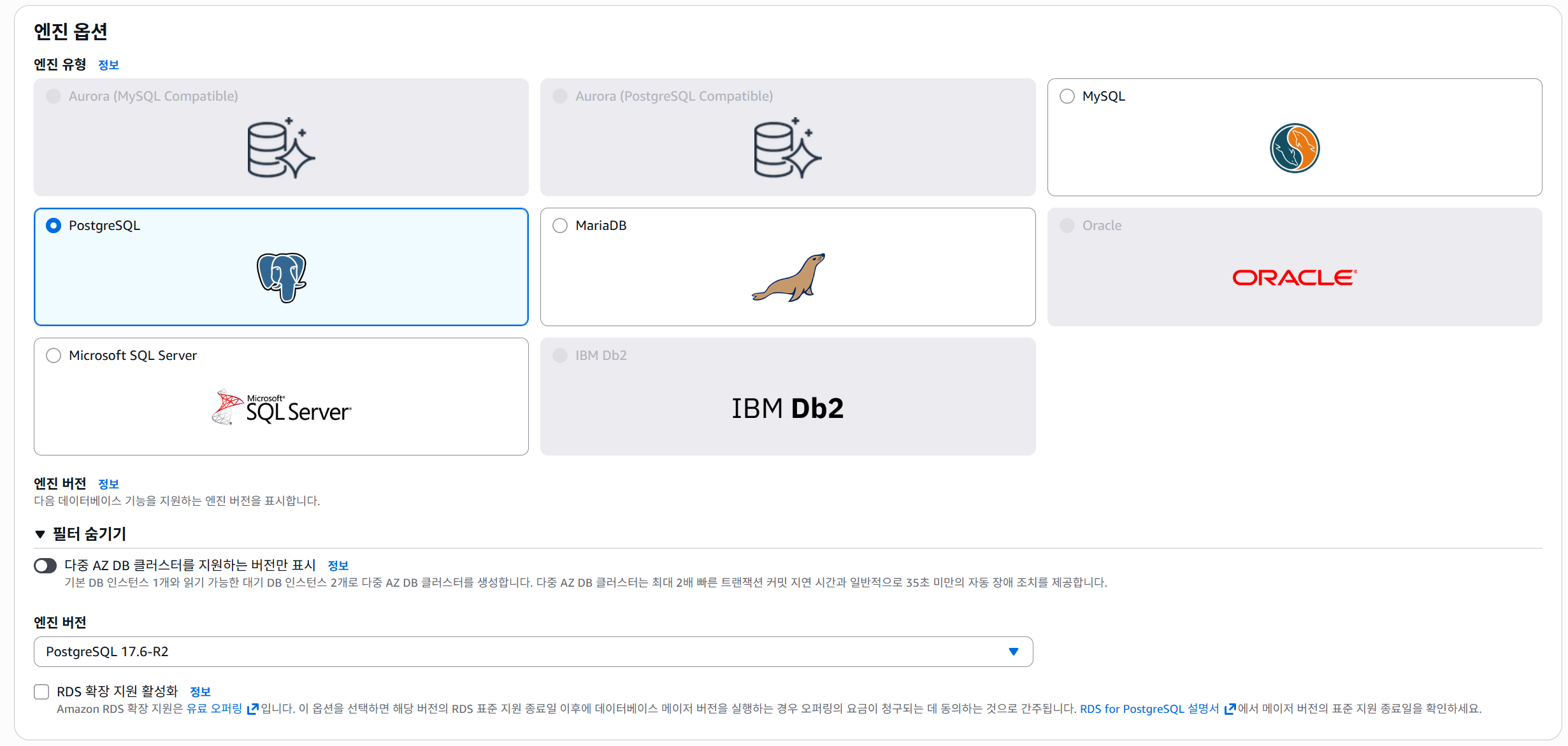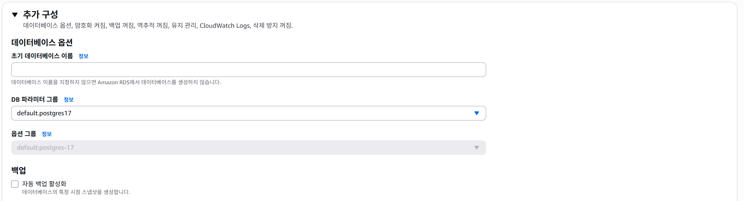 2025년 11월, PostgreSQL 기준, EC2 연결 안 함