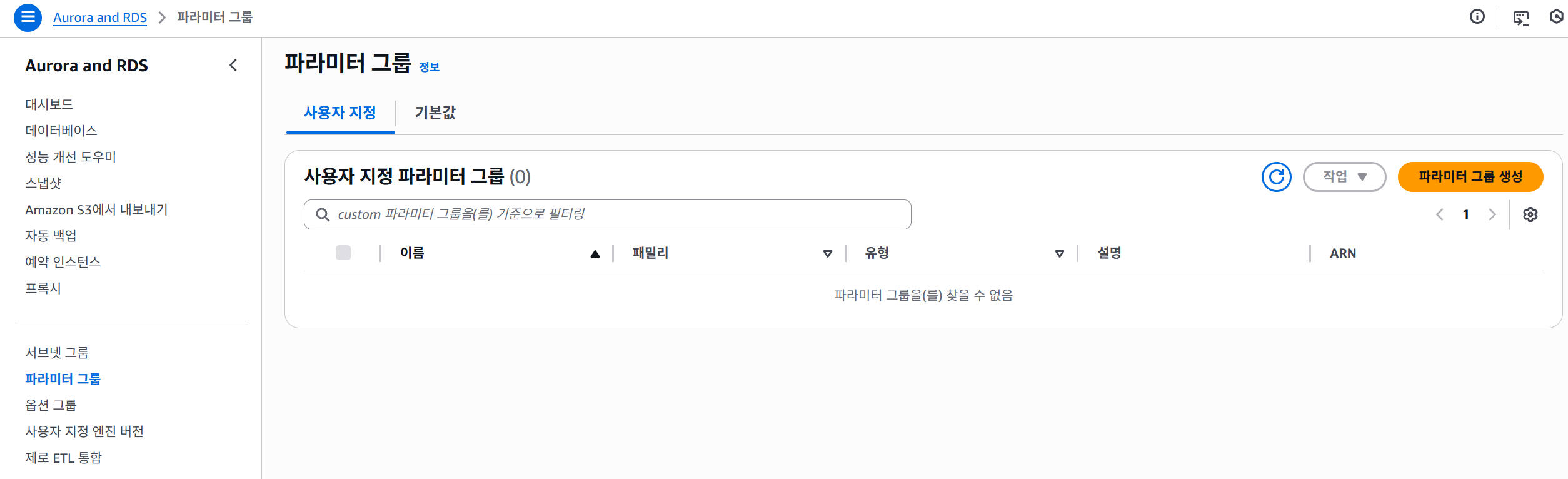 19. 파라미터 그룹 > 파라미터 그룹 생성