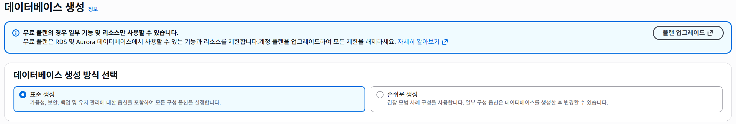 7. 데이터베이스 생성 방식 선택: 표준 생성