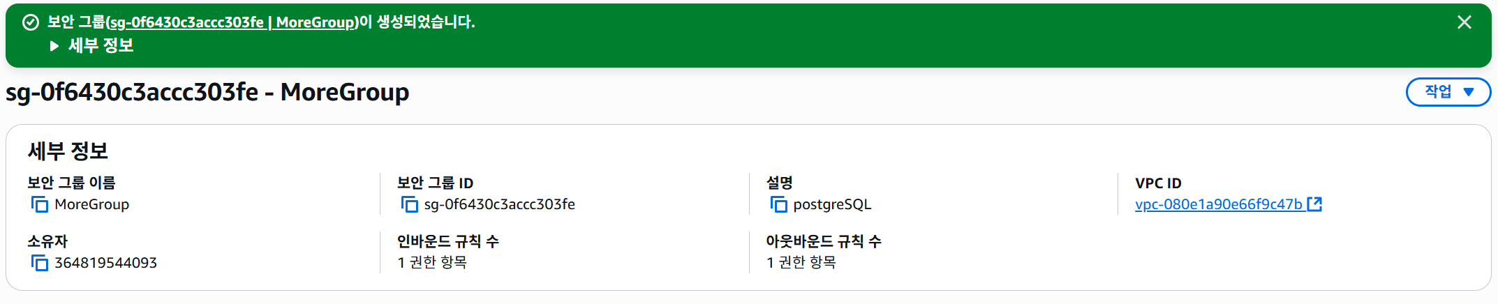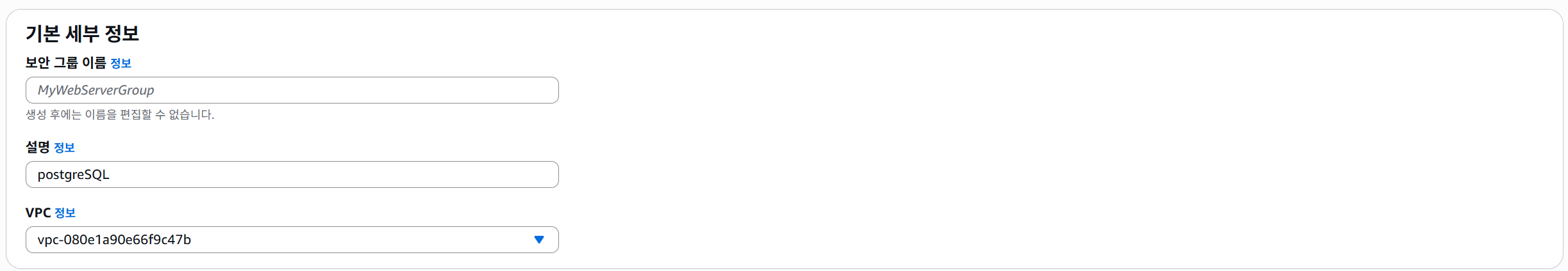 PostgreSQL을 위한 보안 그룹이므로 포트 범위를 5432로 지정